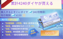 月パスの場合、毎月600円でダイヤが累計4,240個+VIPポイントが34もらえます。