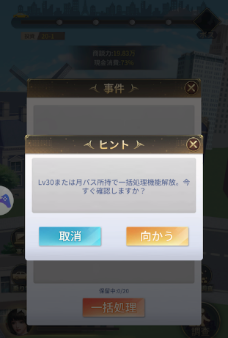 投資の一括処理機能とは、投資を進めていくことで増えていく『事件』を一括で処理する便利機能です。