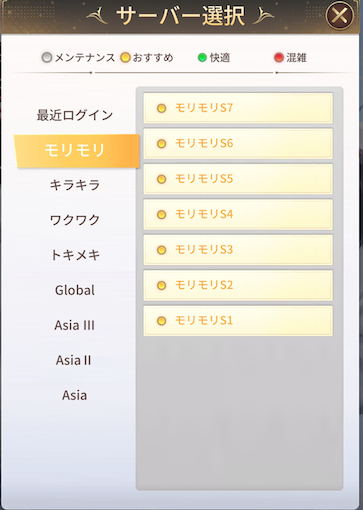 サーバーは、ゲーム起動時のTOP画面で確認できます。
