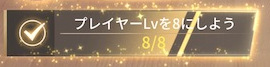 このプレイヤーレベルを8にするのにかかる時間ですが、ひたすらレベル上げに没頭するなら1日でも達成可能です。